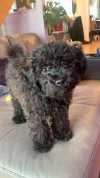Les petits feront environ 12 lb à l âge adulte et auront une forte génétique du caniche, donc un pelage beaucoup plus dense et bouclé.
